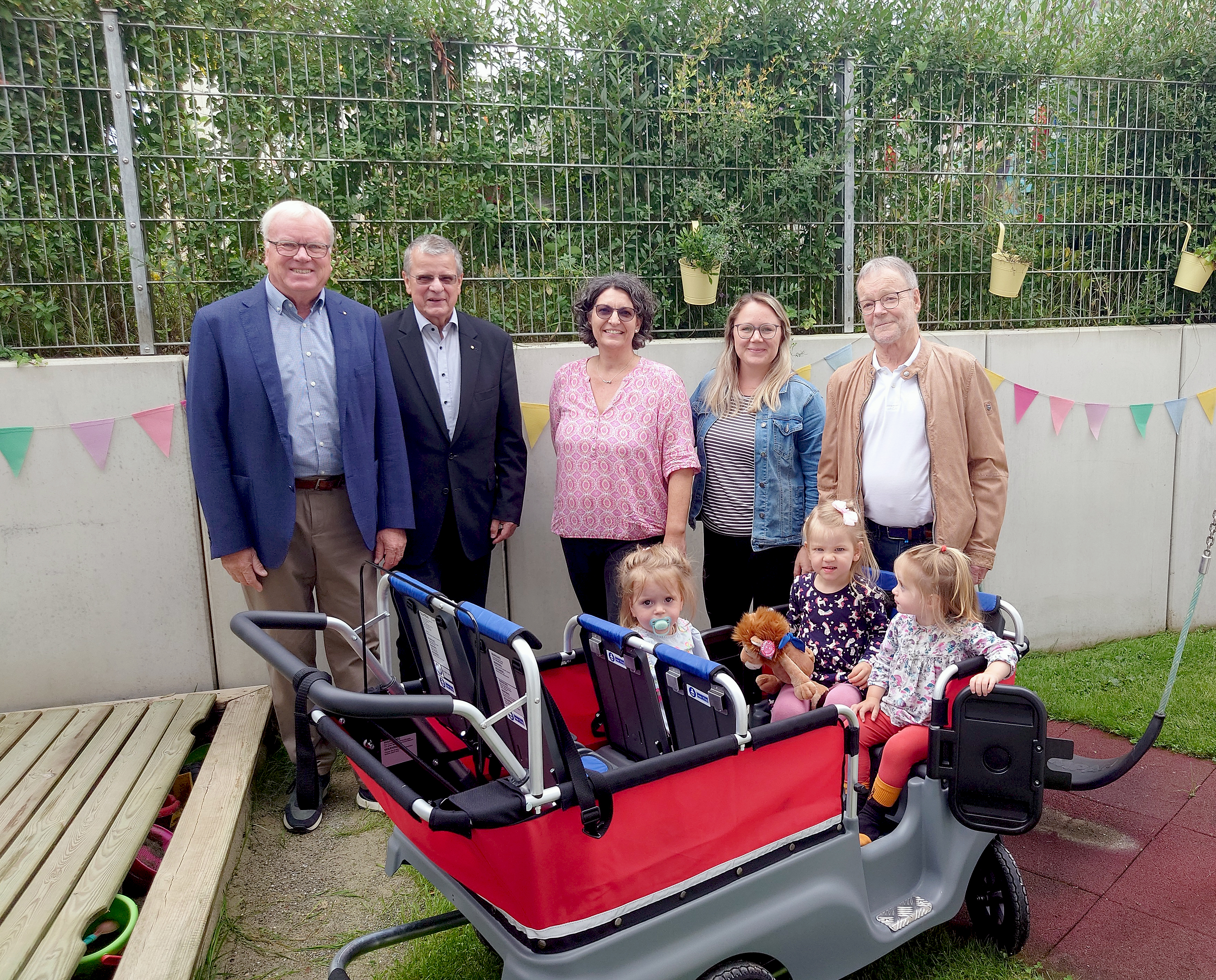 Seit die Kindergrippe – Schneckenhaus - der AWO im Jahr 2019 von Radolfzell nach Markelfingen umgezogen ist, fehlte für die dort betreuten Kinder ein geeigneter fahrbarer Untersatz, um längere Spaziergänge machen zu können.